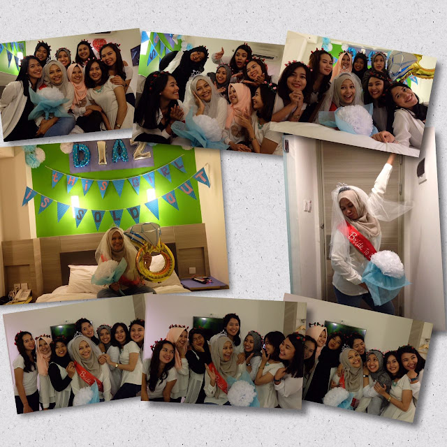 Acaranya hampir gagal karena saya kejebak macet 7 jam dari perjalanan Sukabumi-Jakarta. Mereka tadinya sudah booking salah satu tempat makan yang heits buat foto-foto tapi akhirnya di-cancel dan mereka malah booking satu kamar hotel buat ngerjain saya. Disitulah saya di teriakin habis-habisan sampe dikasih tips honeymoon jos gondos (padahal mereka juga kan belum pernah :p). Seru banget deh pokoknya! Makasih ya Geng Lelah Pitching! Makasih Mak Erny, Apris, Luky, Becca, Agnes, Alma & Dara :’)