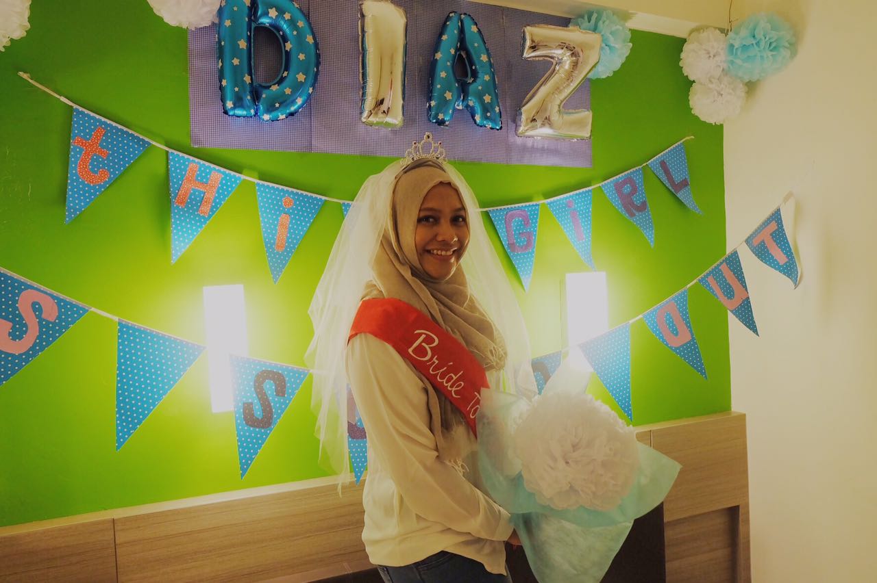 Sebelum menikah, sahabat saya di kantor juga menyelenggarakan pesta lajang ((pesta lajang)) alias bridal shower (bener gak sih?) untuk saya. Mereka pinter banget nyembunyiin rahasianya!